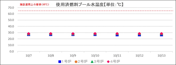 至近の使用済燃料プール水温度(2025年10月7日~2025年10月13日) ※温度上昇確認中は平日のみ更新(状況に応じて都度更新)