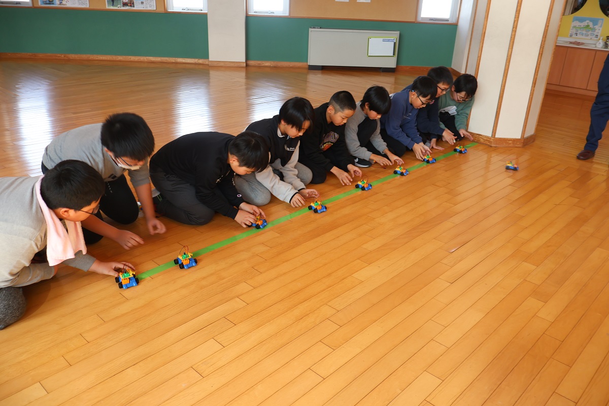 5年生は、手回し発電機を使った電球の点灯や、電気をためたモーターカーのレースなど様々な実験を行いました。