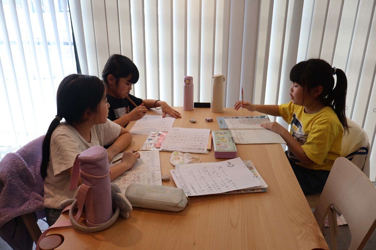 みんなで宿題を進めています
