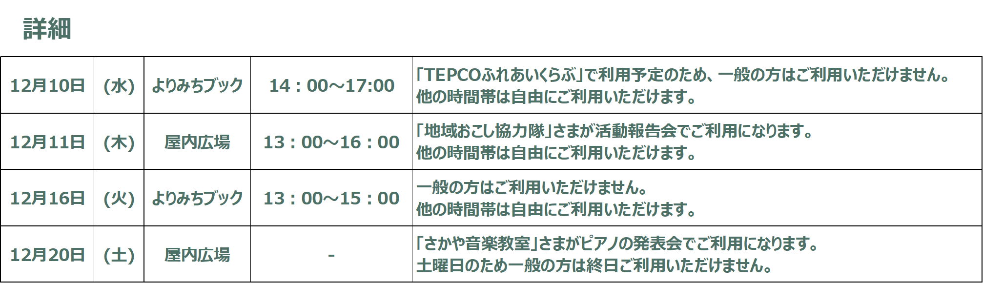 内容はカレンダー下の詳細でご確認ください。