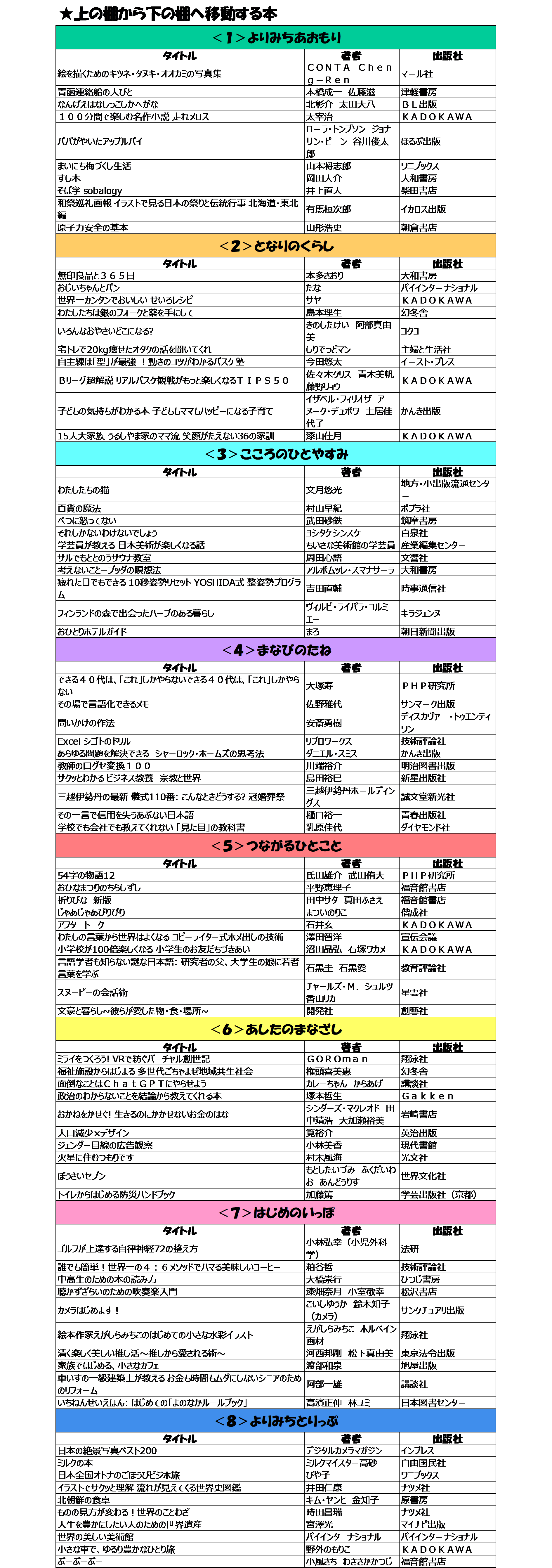 入替予定の本は下記のとおりです。