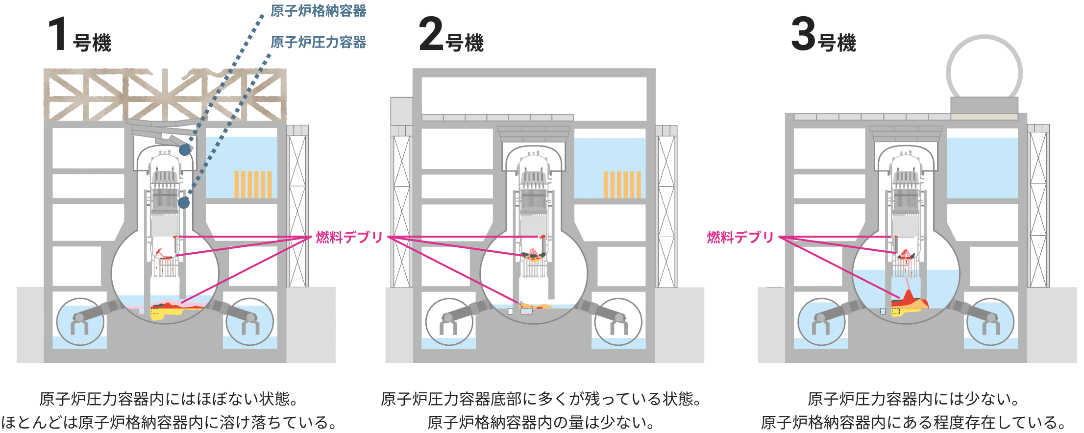 まずは2号機で試験的に少量を取り出し、分析によって性状や生成過程を評価し、大規模な取り出しへつなげる計画です。