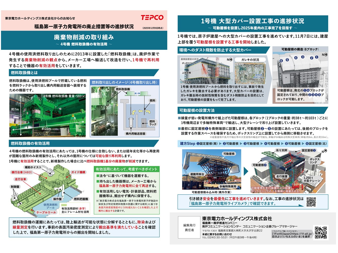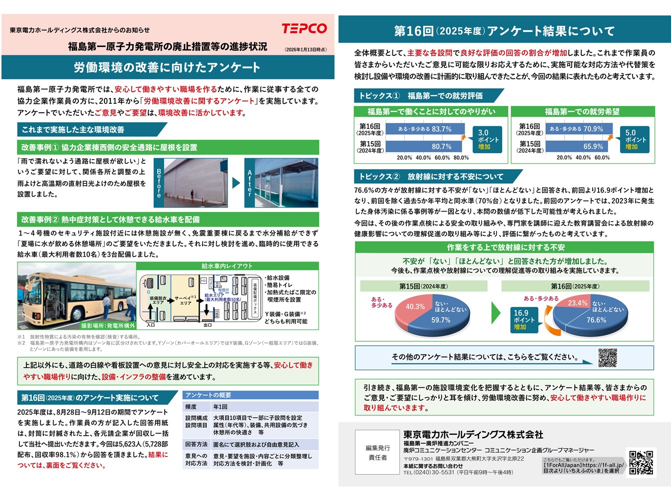 福島県浜通り13市町村の皆さまへ、廃炉の進捗状況をタイムリーにお伝えする廃炉情報リーフレット 「福島第一原子力発電所の廃止措置等の進捗状況(通称:壁新聞)」を掲載しています。