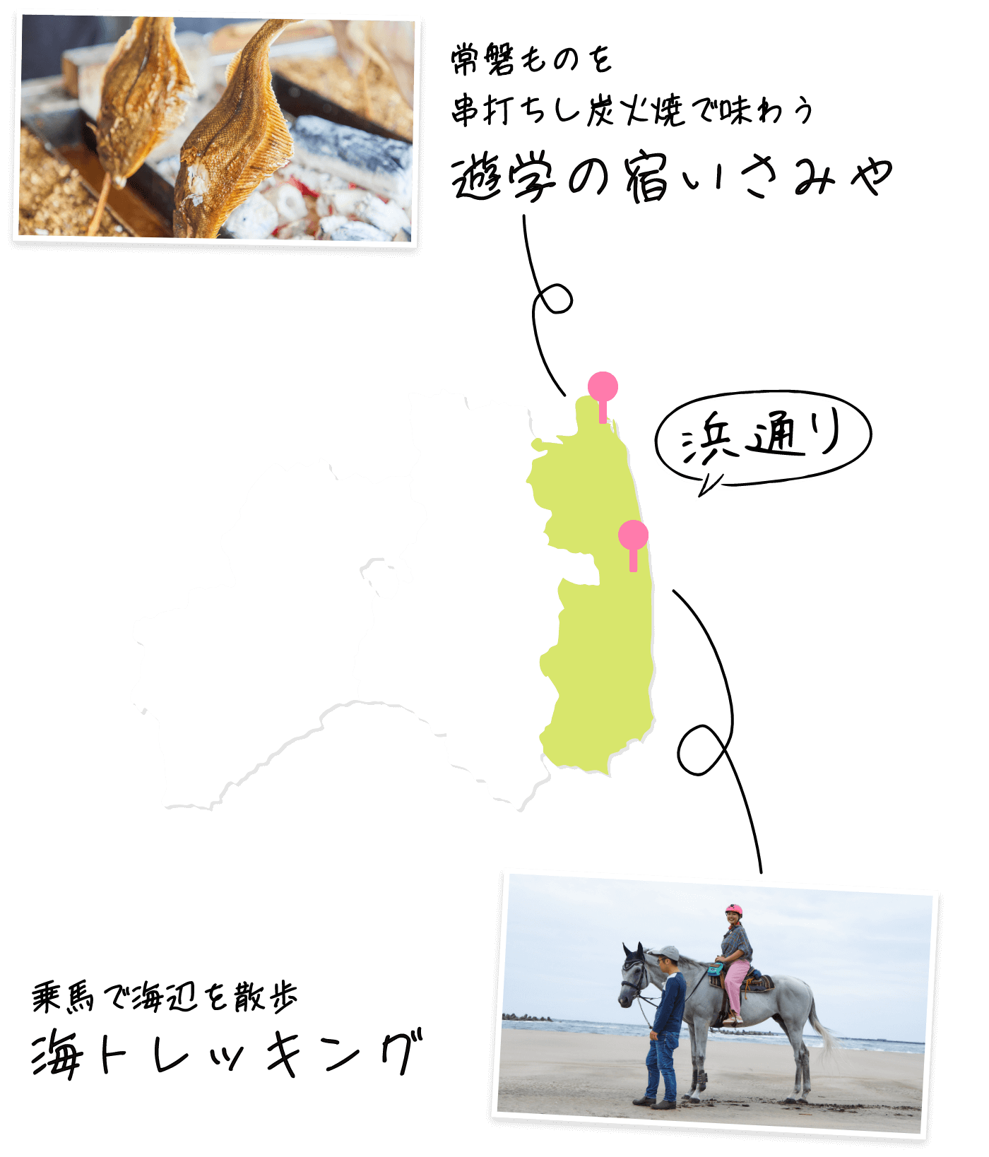 今回訪れたのは、南相馬市の烏崎(からすざき)海浜公園。南相馬市は千年以上の歴史を持つ相馬野馬追が開催されるなど馬と縁の深い街です。ここではHorse Valueさんが運営する馬に乗りながら浜辺を散歩することができる「海トレッキング」を体験できます!