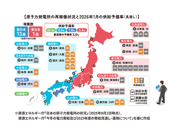 これまでに、国内の原子力発電所33基のうち、新規制基準を満たした14基が再稼働していますが、その大半(13基)が西日本に設置されています。
