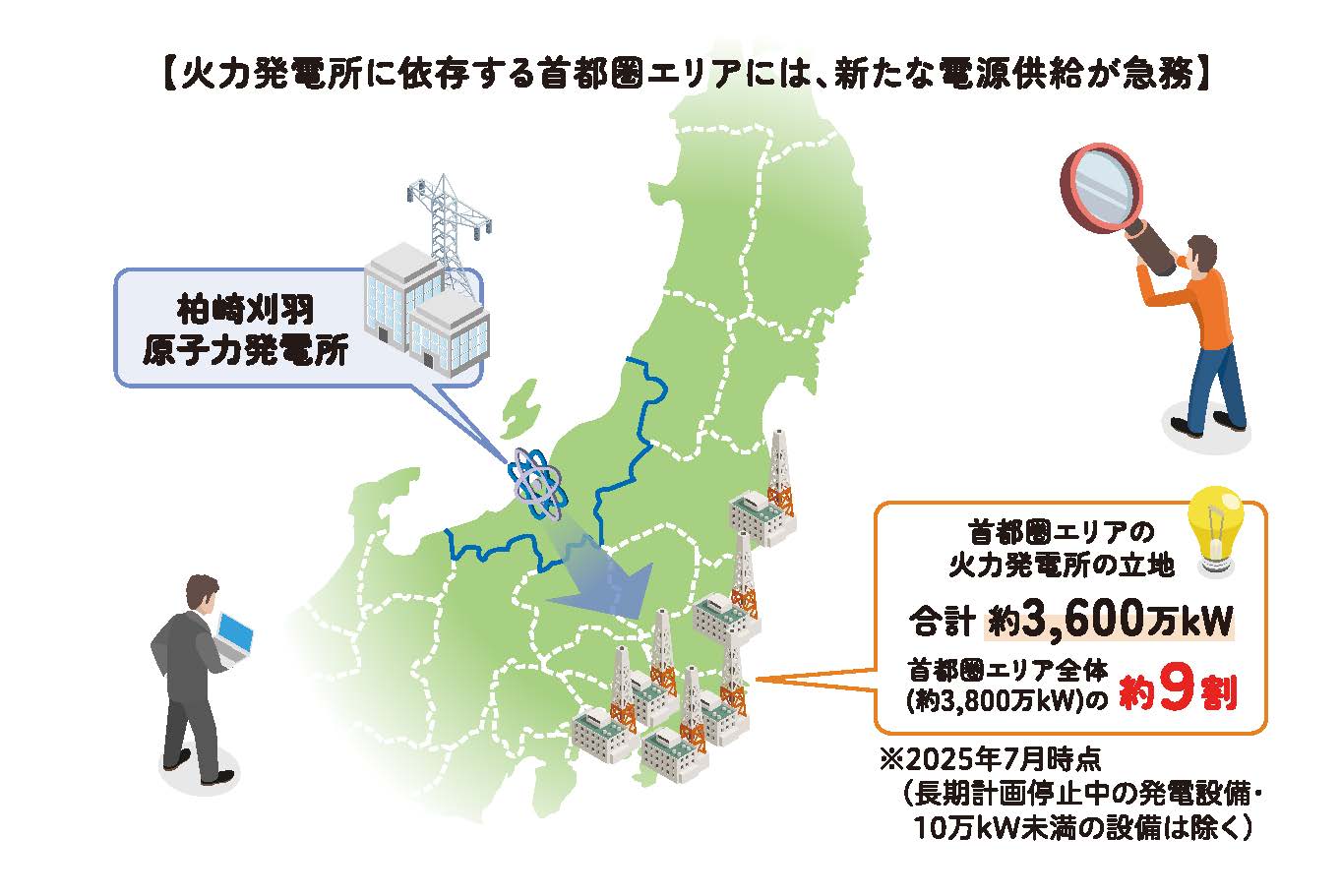 そのため太平洋側で大きな自然災害が発生すると、電力供給に影響が出る可能性があります。東日本大震災の翌日、首都圏の電力需要が約7.2億kWhに上る中、柏崎刈羽原子力発電所では、1・5・6・7号機が運転を続け、約1.2億kWhを発電しました。これは、首都圏の電力需要の約17%を支えたことになります。首都圏の電力供給に責任を持つ当社として、新潟から首都圏への電力供給を確保するために日本海側に立地する柏崎刈羽原子力発電所を再稼働させることは、レジリエンスの観点から重要な発電設備と考えています。