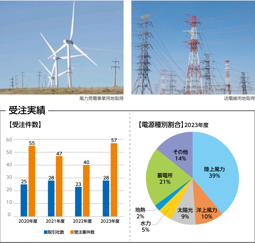 - 風力・太陽光をはじめとする再生可能エネルギー事業者さまからのご依頼を受け、全国(北海道から鹿児島県にいたるまで)のお客さまにご採用いただいております。