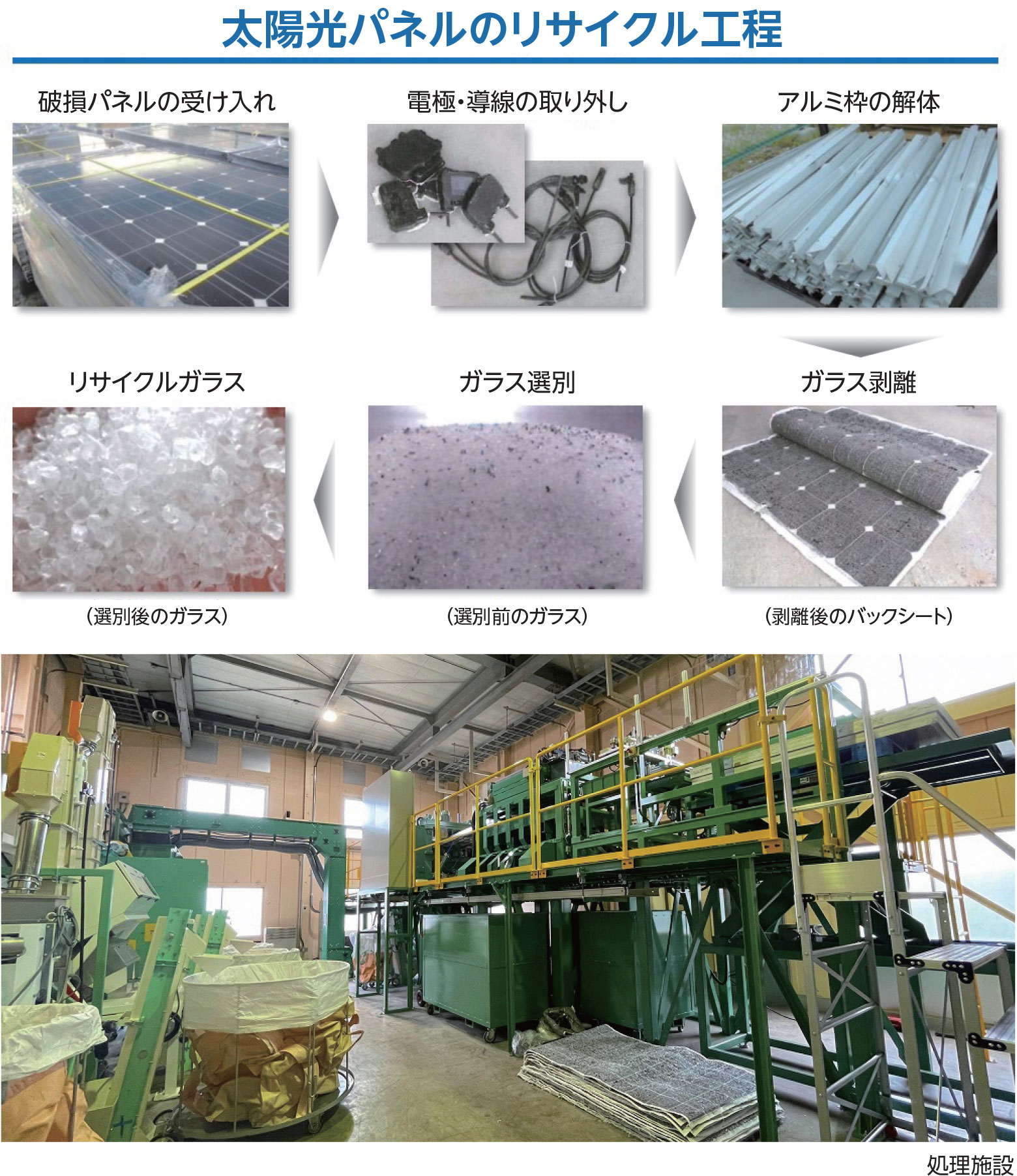 - 産業用太陽光パネルに特化した処理が可能です。