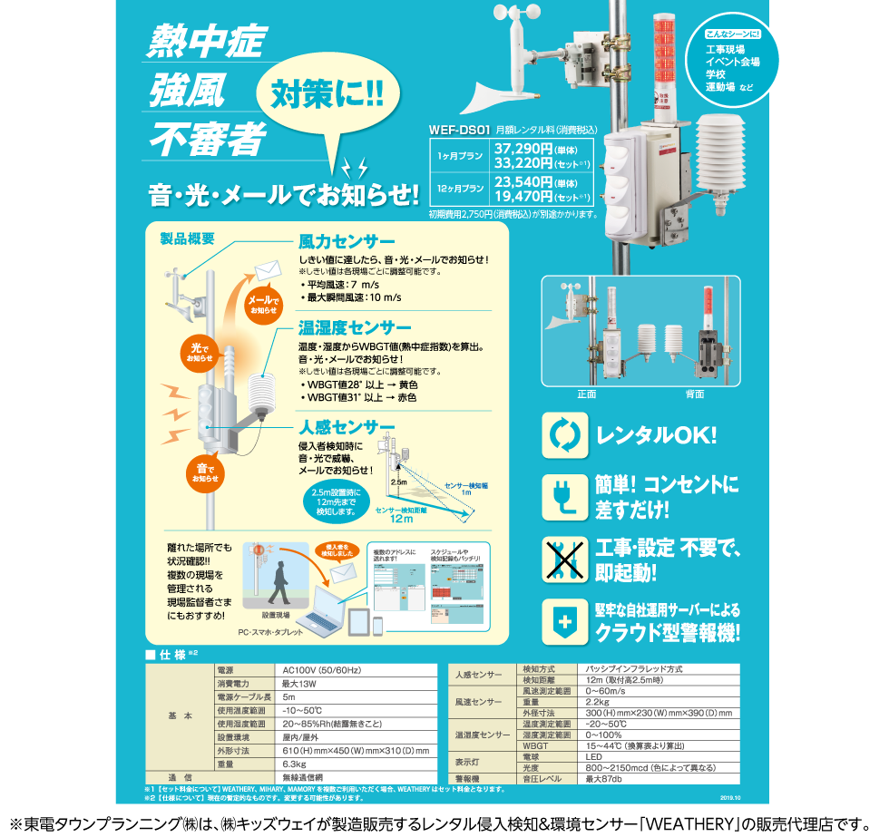 検知した侵入者を表示灯と音声で威嚇。熱中症や風速警報などもメールでお知らせ