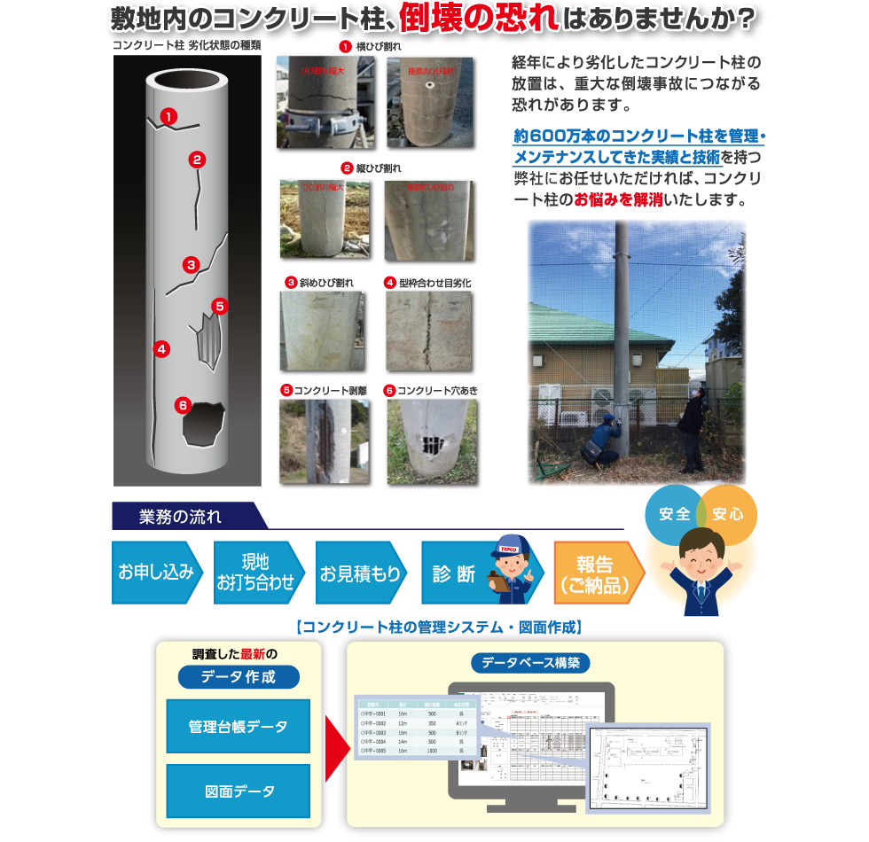 - 診断結果を踏まえ、コンクリート柱の適切な維持管理をご提案いたします。