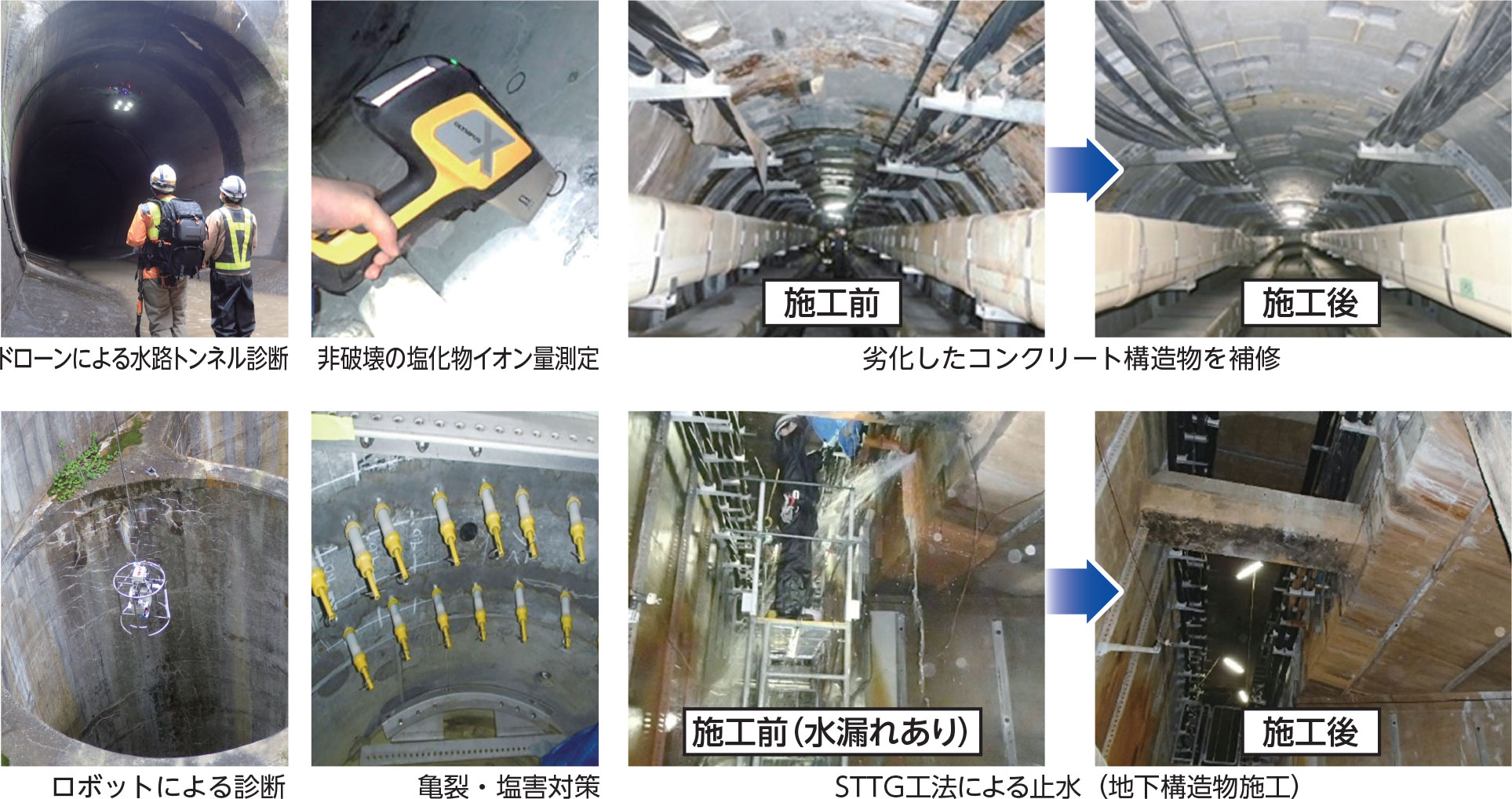 - 長期耐久性を備えた漏水補修技術「STTG工法」により、ライフサイクルコストを低減いたします。