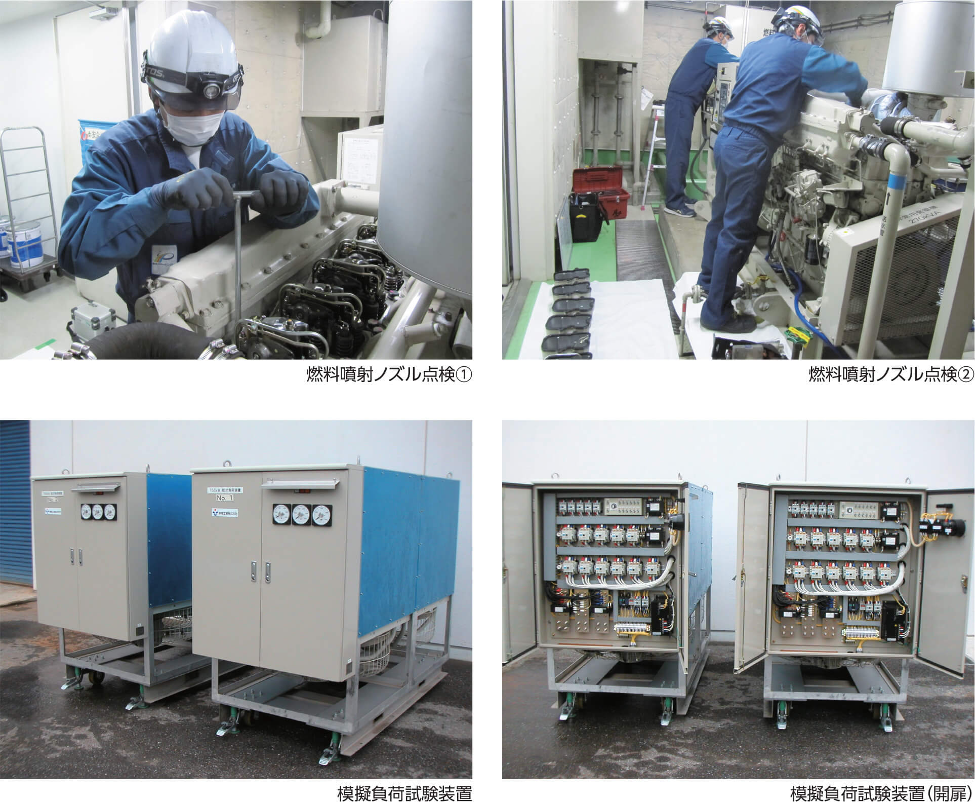 - 模擬負荷試験装置を最大1,500kWまで保有しており、さまざまな容量の非常用発電機に対応可能です。