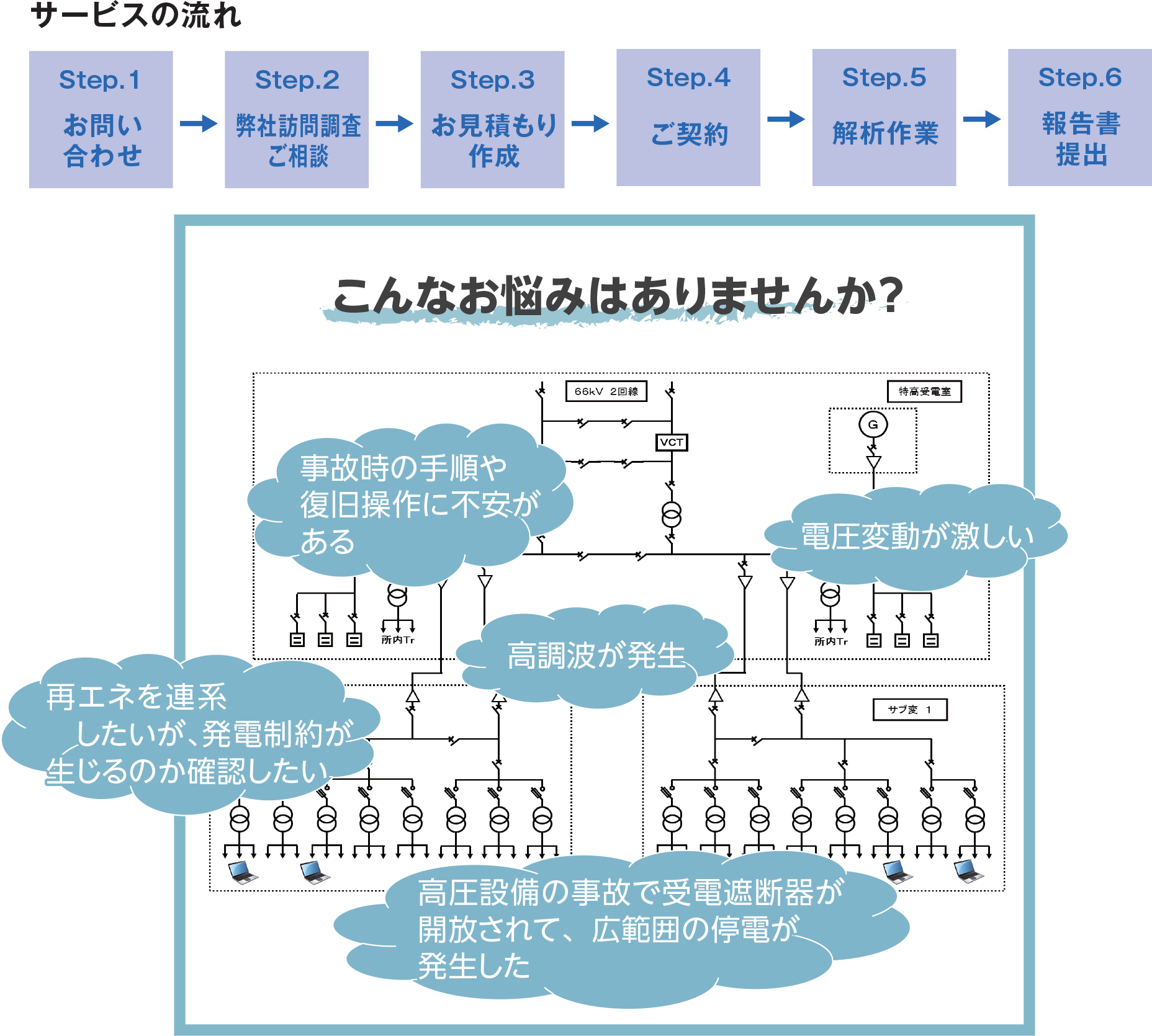 - トラブルを未然に防いで保全する電力系統コンサルティングにより、お客さま設備をトータルサポートいたします。