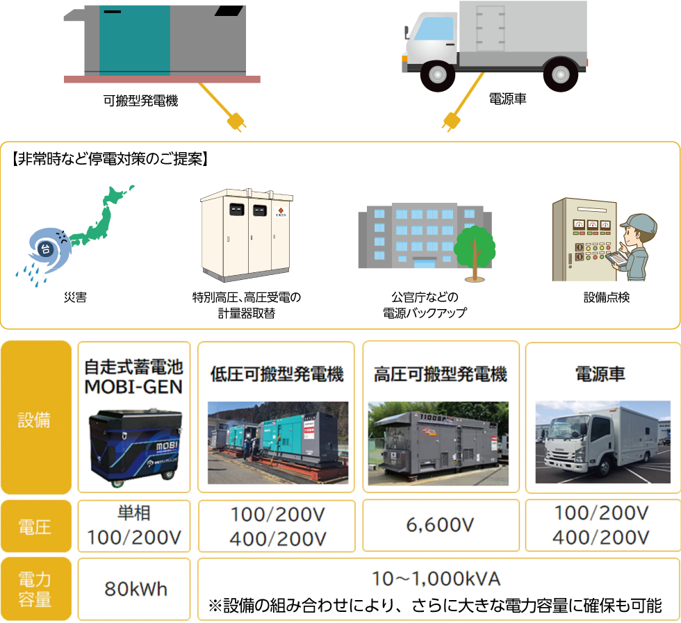 BCP対策や計画的(イベント)な停電に備えて、「電源」をお届けします