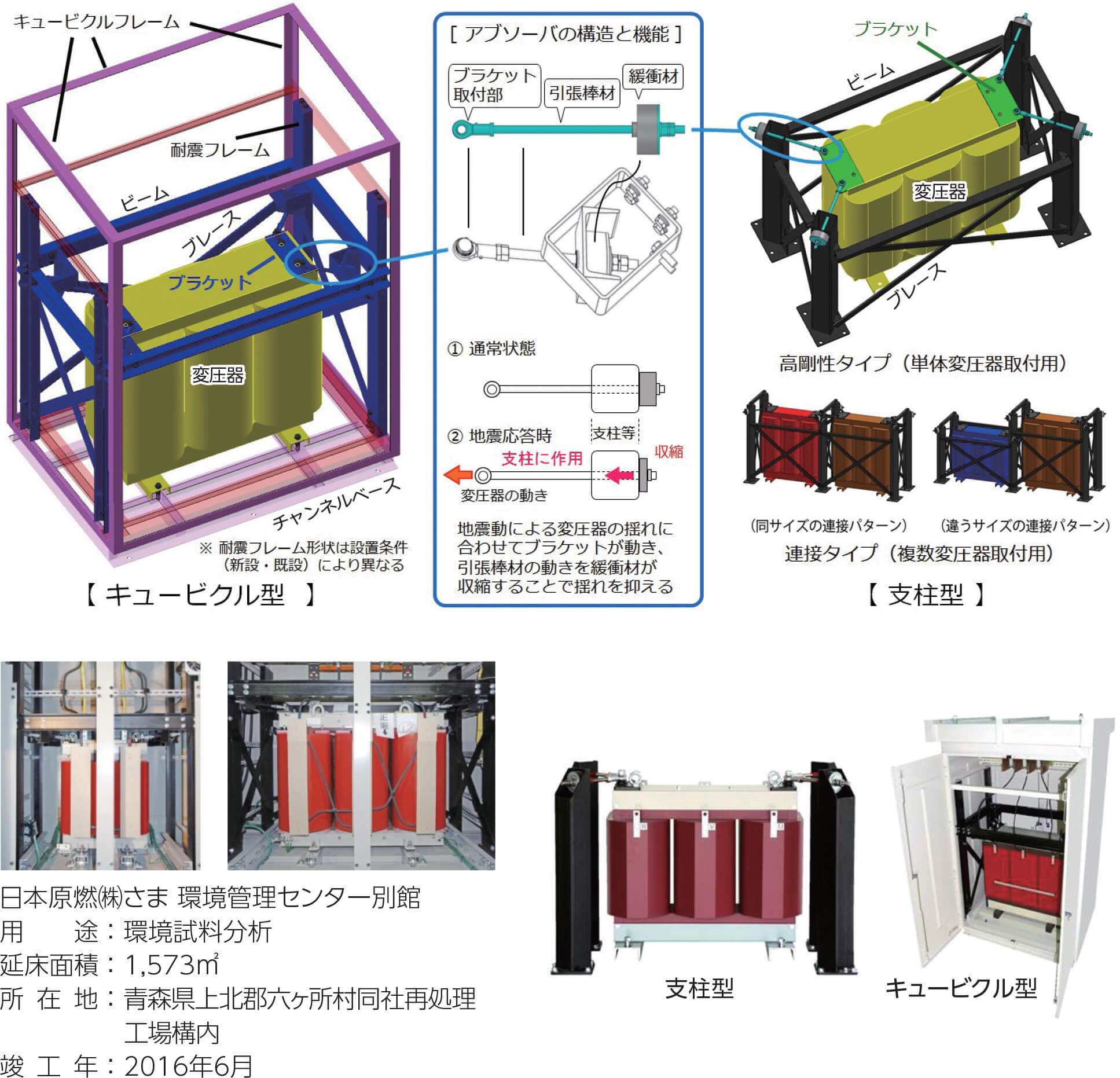 - 受変電システム全体の揺れを安全範囲内に収め、最適化できるのは変圧器耐震装置だけです。