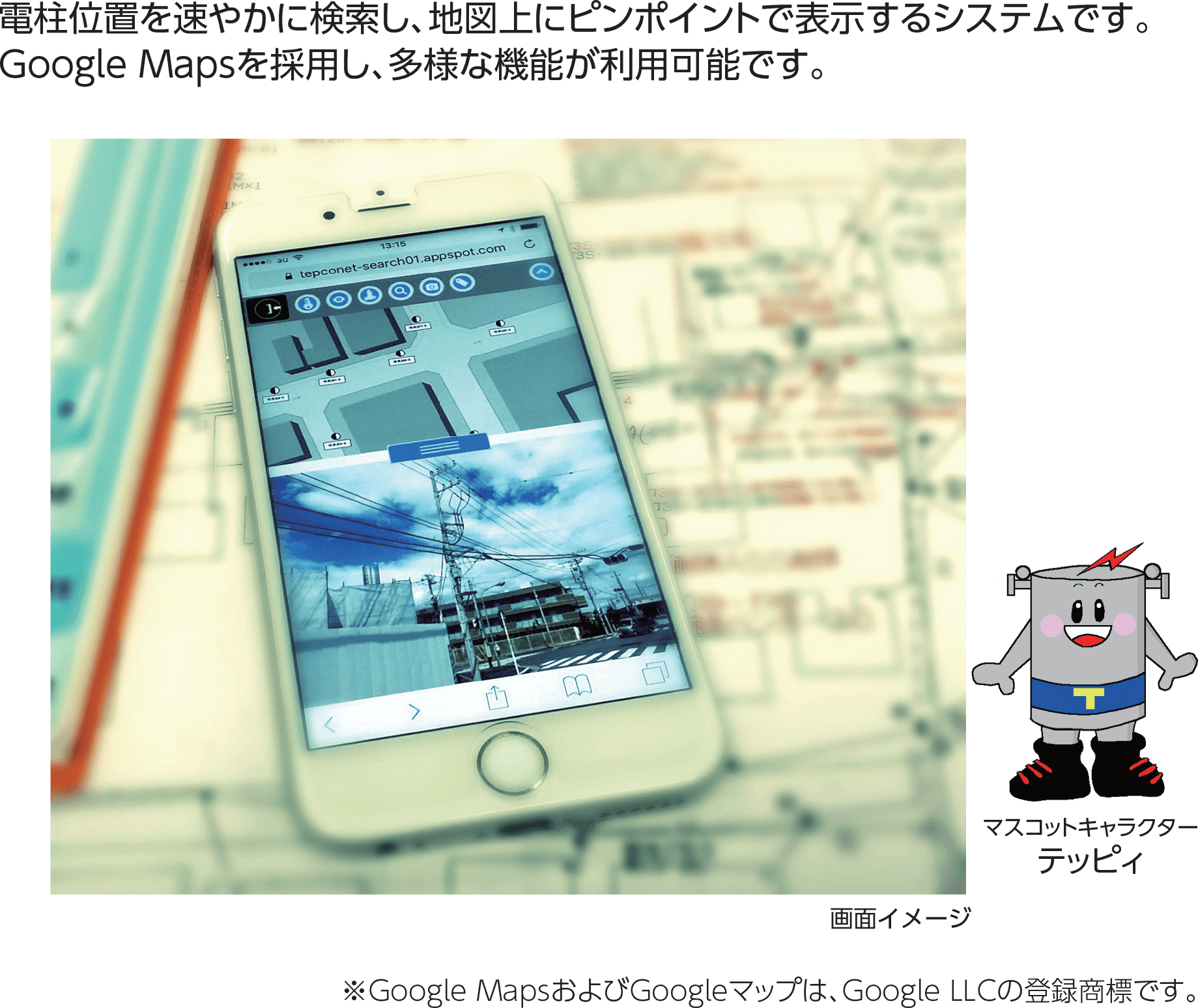 - 現地に出向しなくても電柱が特定でき、業務の効率化・省力化に大いに役立っています。
