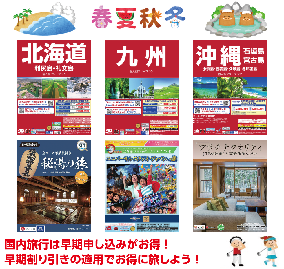 (株)JTB総合提携店である弊社より、「国内旅行」をご案内いたします。