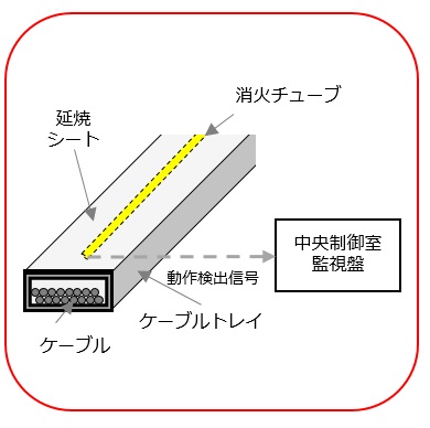 - 施工はケーブルトレイ内に消火チューブの設置のみ