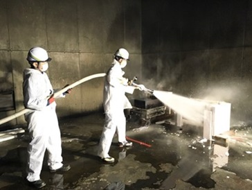 燃焼試験後の放水試験